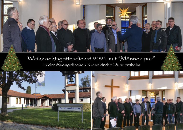 Mit insgesamt 6 Stücken stellte der Chor Männer pur den musikalischen Teil des Gottesdienstes m 2. Weihnachtsfeiertag in der evangelischen Kreuzkirche in Durmersheim. Die Anwesenden Besucher des Gottesdienstes drückten ihre Begeisterung für die musikalischen Darbietungen durch anhaltenden Applaus am Ende des Gottesdienstes aus.